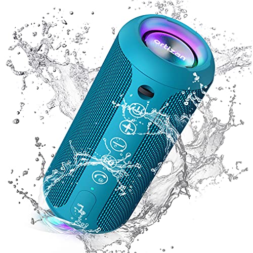 Ortizan Bluetooth スピーカー 防水IPX7 ワイヤレススピーカー LEDライト付き 30時間連続再生 24W出力 小型 重低音