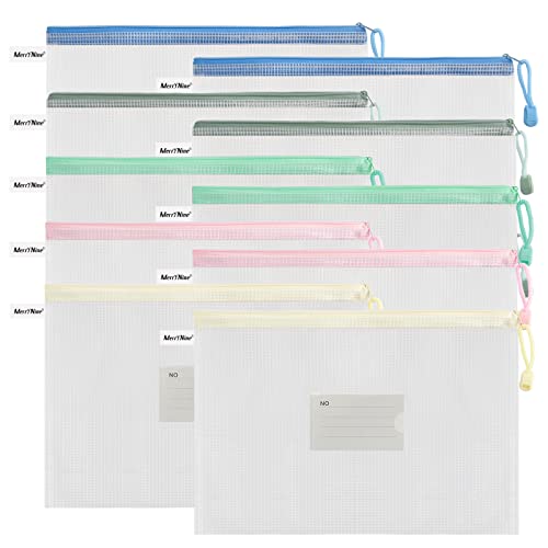 ・?カラフルなファイルバッグ-10PCSホワイトメッシュファイルバッグ、5色ジッパープラーとクロスバッグ。 さまざまな色がさまざまなニーズに対応します。ポケットやカードを使用すると、さまざまなファイルを並べ替えるのに便利です。
