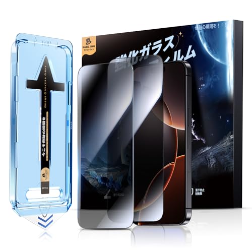 「覗き見防止」 MAGIC JOHN iPhone 16 用 ガラスフィルム ガイド枠一体式 貼りやすい ズレなく 気泡レス 9H硬度 耐衝撃