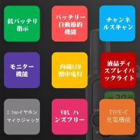 ・実用的な機能: VOXハンドフリー機能付き、LED懐中電灯内蔵、耐久性、クリスタルサウンド、自動省電力、ローバッテリーアラーム、オートスキャンチャンネル. 同じチャンネルに設定すると、複数人での通話がです。