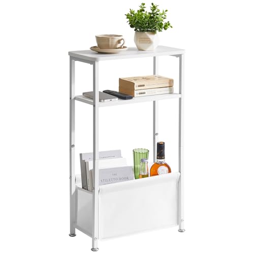 Aibiju 細いサイドテーブル 雑誌袋付き さいどテーブルソファ横 ベッドサイドラック 隙間 ナイトテーブル 寝室棚 スリム 3段 幅40奥行