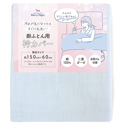 メリーナイト(Merry Night) 衿カバー 2重ガーゼ ブルー 約150×60cm (シングル・シングルロングサイズの掛け布団に最適)全周
