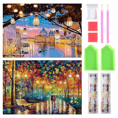 サムコス ダイヤモンドアート キット ダイヤモンドの絵画 2個セット きれい 全面貼り付け ダイヤモンドアート 5D 初心者 大人の子供 DIY