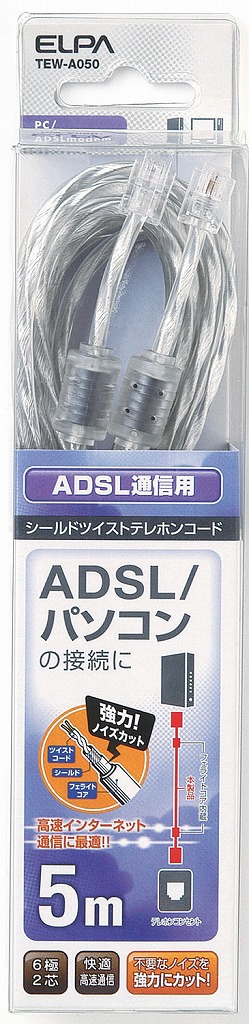 ELPA ADSLシールドツイスト6極2芯5m TEW-A050