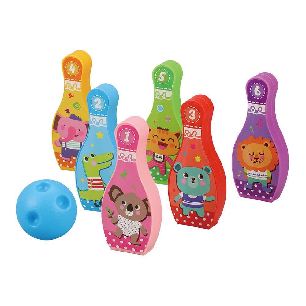 かわいい動物のボーリングセット! ピン6本とボール1個のセット 【詳細】 セット内容:本体×1 商品サイズ:ピン:139×58×23mm、ボール:φ73mm 材質:PE、紙 [ おもちゃ 一般玩具 スポーツ玩具 ]