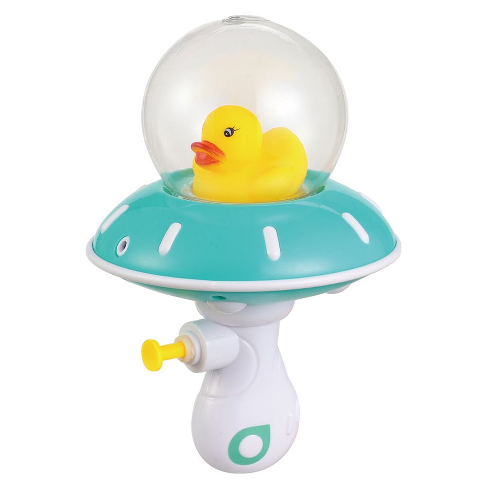 アヒルが水に浮かぶUFO型のかわいい水てっぽうです。夏の水遊びやお風呂タイムにおすすめです。