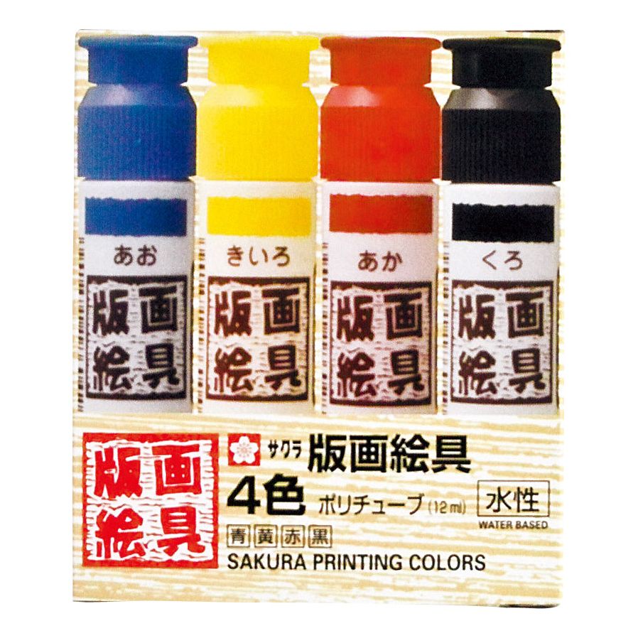 (まとめ買い)サクラクレパス 版画絵具水性 ポリチューブ入り 12ml 4色セット EWHW4 EWHW4 〔×3〕