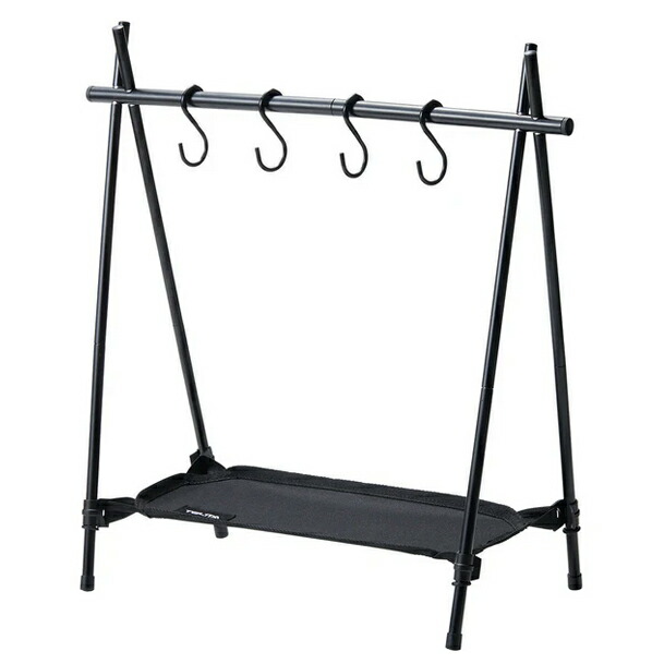 S字フックとハンモック付きのラックで、さまざまな小物を吊るしたり浮かせたりして整理できます。同シリーズのマルチケースやマルチポーチを吊るすことも可能です。ショックコード(ポール同士を連結させるゴム)が内蔵されており、簡単に折り畳めて持ち運びも楽々です。