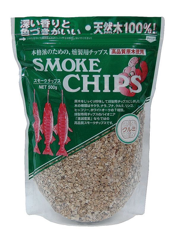 本格的なスモークにはやはりチップが人気。<br>手間をかけたぶん出来上がりは格別。<br><br>規格:クルミ<br>内容量:500g<br>材質:国産原木を使用<br> ※ヒッコリー、ホワイトオークはアメリカ産を使用<br><br>※画像は代表画像ですので、画像のサイズ感と実際のお届け商品のサイズ感は異なる場合があります。商品名および仕様に記載のサイズ・カラー等がお届けの商品になります。<br><br>