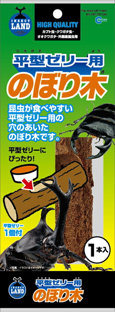 平型ゼリーにぴったりの穴があいてます<br><br>・平型ゼリーにぴったりの穴があいたのぼり木です。<br><br>【材質/素材】<br>木<br><br>【原産国または製造地】<br>タイ・中国<br><br>【商品使用時サイズ】<br>W45×D45×H150mm<br><br>【個装サイズ】<br>100×270×55mm<br><br>【分類】<br>昆虫用品:木製品・食器<br><br>※商品パッケージのリニューアル等により商品画像とお届け商品のパッケージが異なる場合がございます。予めご了承お願い致します。<br><br>