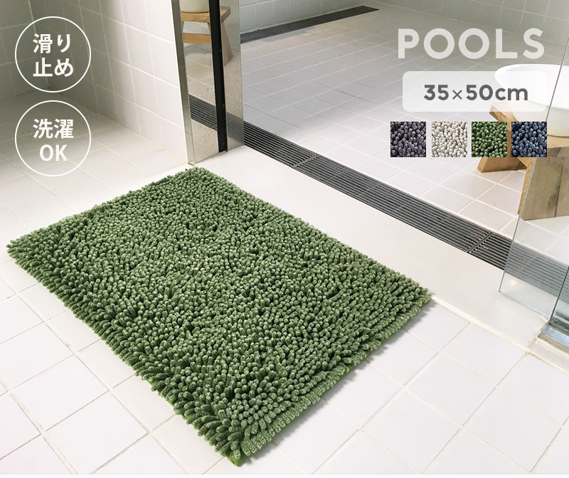 バスマット マット お風呂マット プールス 35×50cm 浴室マット 滑り止め 洗える 吸水 速乾 ブルー グリーン おしゃれ 北欧