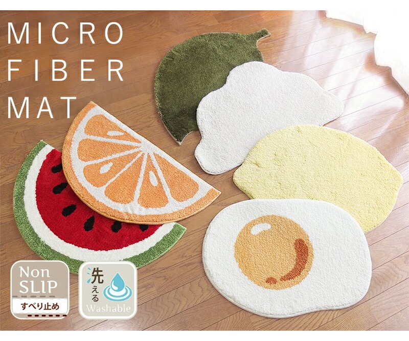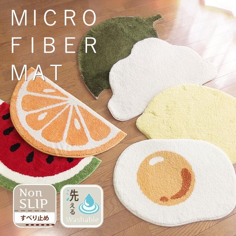 爆買 バスマット 洗える 滑り止め 洗面所 マット 玄関マット 北欧 室内 マイクロファイバー ウォッシャブル すべり止め くも れもん オレンジ はっぱ めだまやき