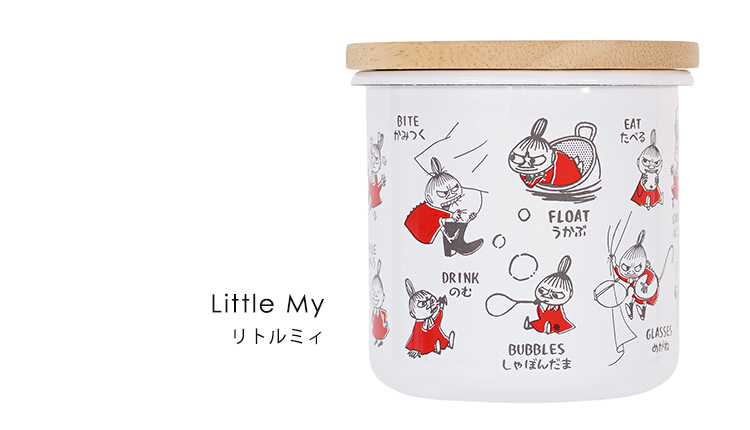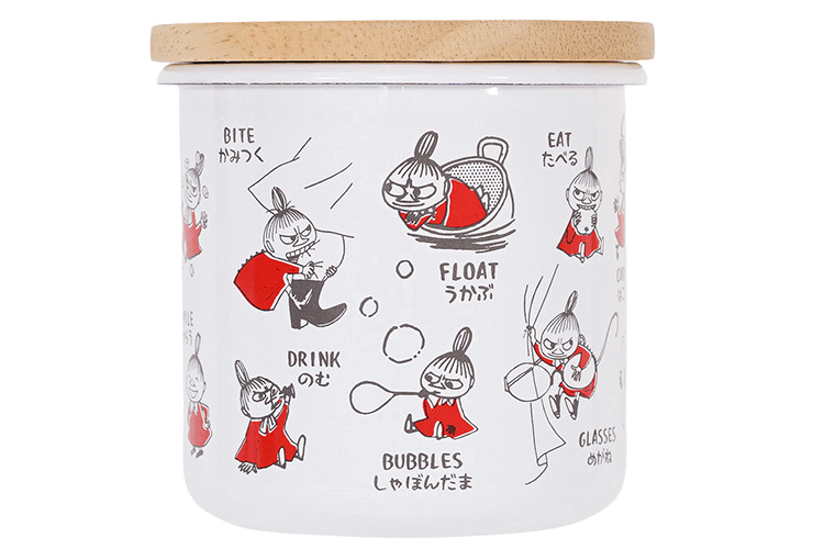 楽しいデザインのムーミンアレコレシリーズ 富士ホーローからムーミンとリトルミィのたくさんの表情が 楽しめるホーロー製キャニスターが登場! ついつい細部まで見入ってしまうかわいいデザインで キッチンを彩るアイテムになりました。 |