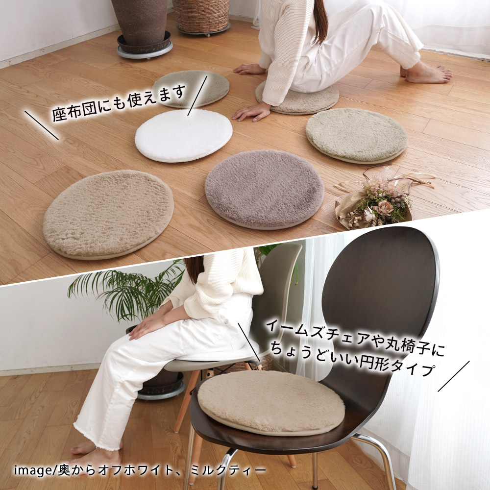 爆買 在庫処分 椅子用クッション シートクッション ラビットファーチェアパッド 35Rcm 丸型 チェアマット 円形 北欧 マット RF-400