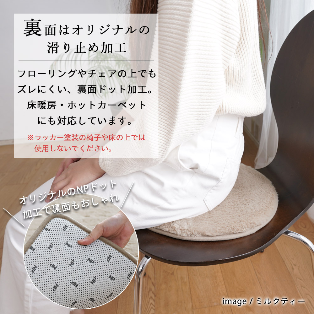 ●裏面の滑り止めとの相性により稀に化学反応をおこし、座面に裏面の樹脂が付着する恐れがあります。座面の状態を確認しながらお使い下さい。