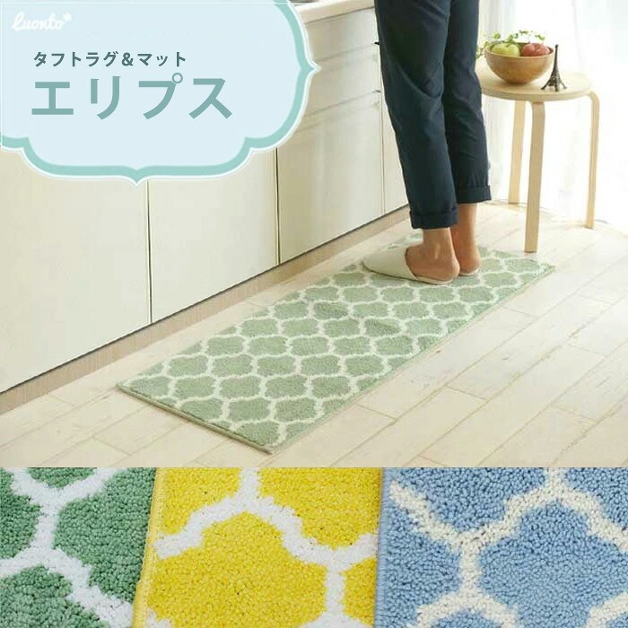 北欧テイストのLUONTO*シリーズ 明るい色づかいがお部屋を軽やかにしてくれる♪ 北欧テイスト・タフトラグ&マット 【エリプス】 刺繍のような手法でしっかりパイルを 植え付けたタフトラグ。 薄手なので洗濯もしやすく、 裏面はやわらかな不織布張り& ノンスリップ加工! リビングラグの他、キッチンマットなど 豊富なサイズ展開も魅力! | |