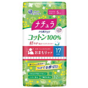 大王製紙 ナチュラ さら肌さらり コットン100% 軽やか吸水パンティライナー 17cm 5cc 32枚入