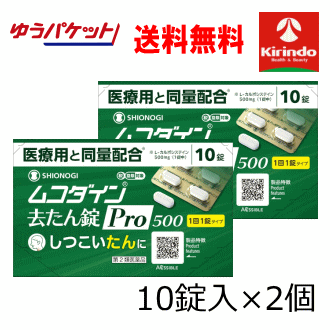 在庫のみ ゆうパケットで送料無料 2個セット【第2類医薬品】シオノギ ムコダイン 去たん錠 Pro 500 10錠×2個 計20錠 しつこいタンに 去痰錠 プロ