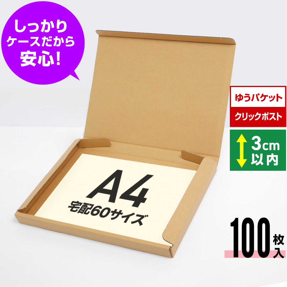 ゆうパケット クリックポスト 箱 3cm A4 100枚 ダンボール 60サイズ 薄型 段ボール箱 メルカリ しっかり 丈夫