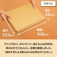 箱の高さ(外寸)は3cm以内となっており、日本郵便ゆうパケットやクリックポスト、規格内定形外郵便で発送するために最適なサイズのダンボール箱です。メルカリ、ヤフオク!・PayPayフリマ、ラクマなど通販にもご活用ください。お買得な価格にて、ご提供させていただきます。