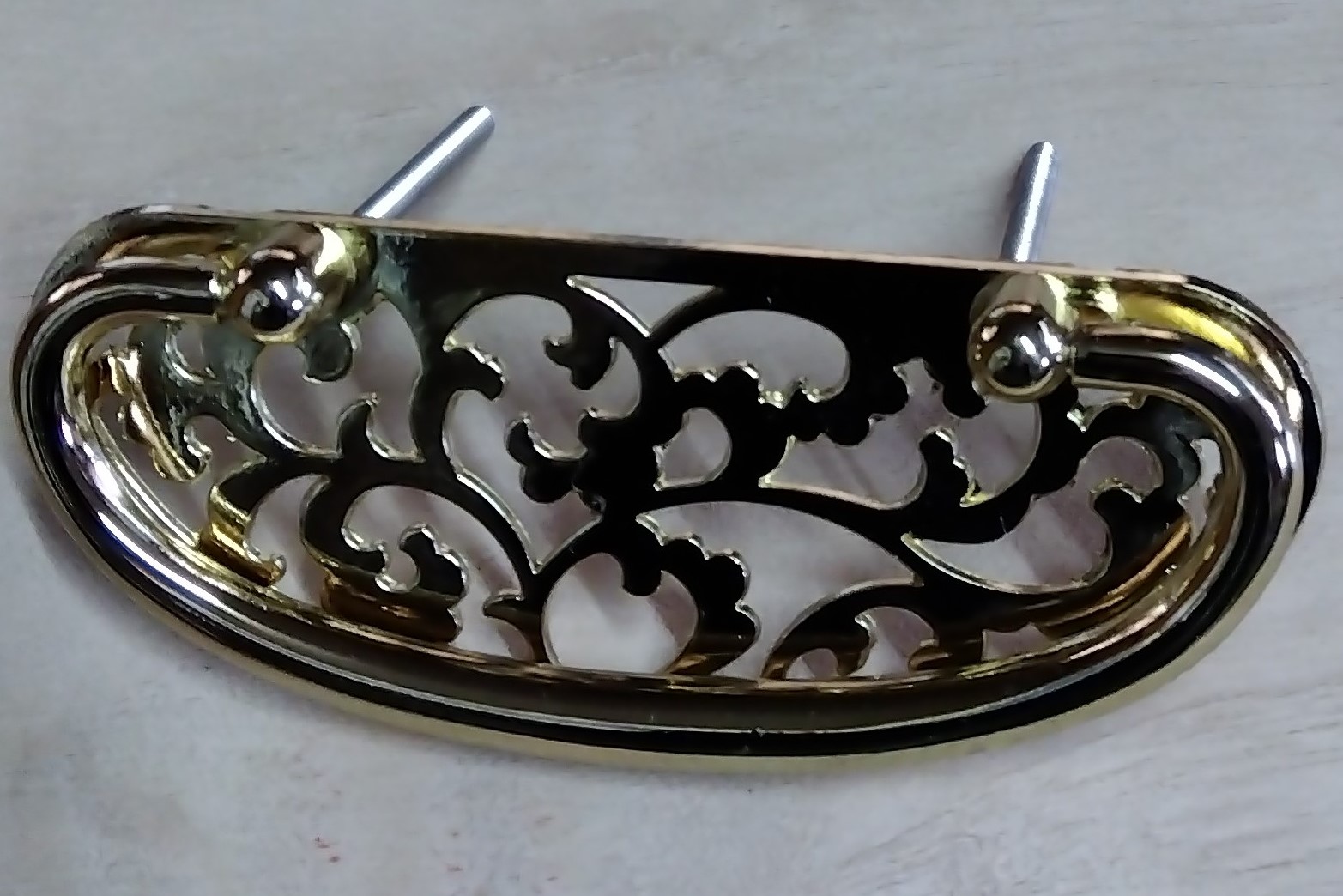 ツマミ和金具引手DIY 唐草かん・金色・足幅47mm 商品番号k-714k01