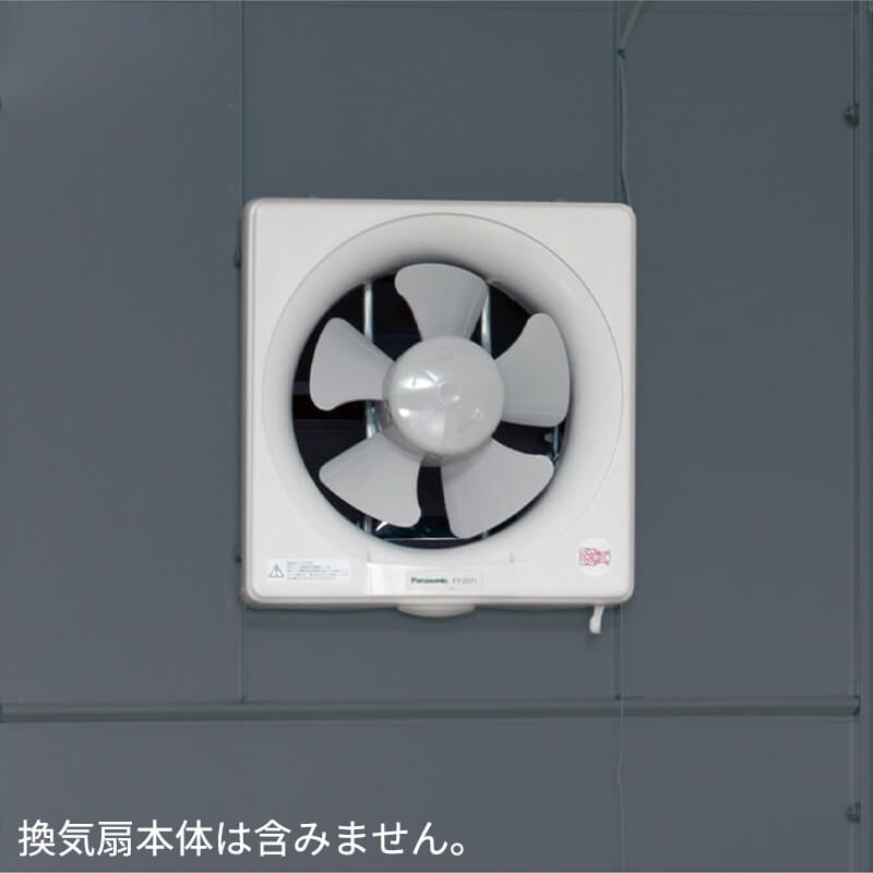 ガレージ内の熱気、湿気、溶剤の臭気などを強力に排気したい場合に最適です。換気扇(別売)を併用することで、庫内の空気を強制的に循環させ、快適な環境を維持できます。