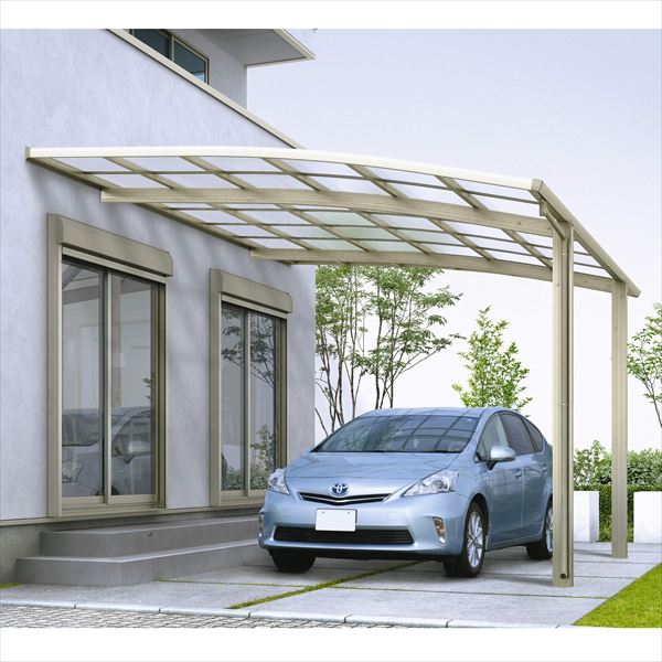 YKKのカーポートで、34m/秒相当を達成した、アール屋根タイプの壁付専用カーポートです。屋根と壁の間に生じるすき間をなくして雨水の浸入を防ぎ、家屋とカーポートを一体化できます。そのため空きスペースができず、。カーポートだけでなく、ゆったりとしたテラス屋根としてもご利用いただけます。本体カラー4色、屋根ふき材のカラー4色のバリエーションがあり、ご自宅の雰囲気にあったものをお選び頂けます。断面形状の大きな雨樋(後枠)を採用することで、水の流れをスムーズにしています。この商品は1台駐車対応の壁付専用カーポートです。