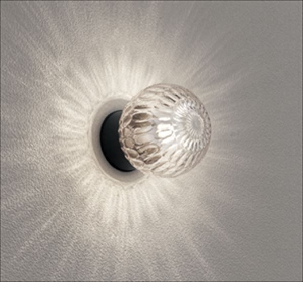 ディンプル模様の透明ガラスを通して壁面に光の模様をつくります。