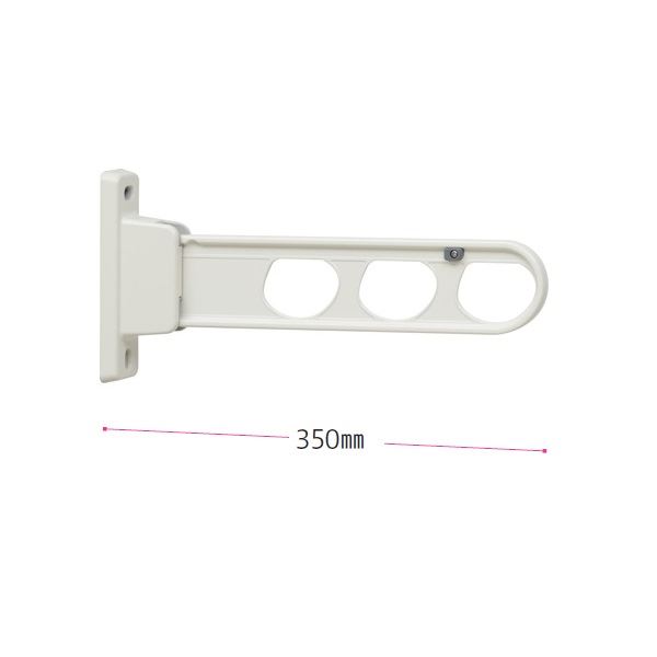 アームの角度を2段階で調整することができます。また、収納すれば壁面からの出っ張りを最小限に抑えることができます。竿の中心を持って操作すれば、左右のアームを同時に動かすことができます。アームの角度を変えるたびに、ポールを外す手間がありません。収納したときに竿の位置を高く保つことができる「振り上げ収納」を採用。