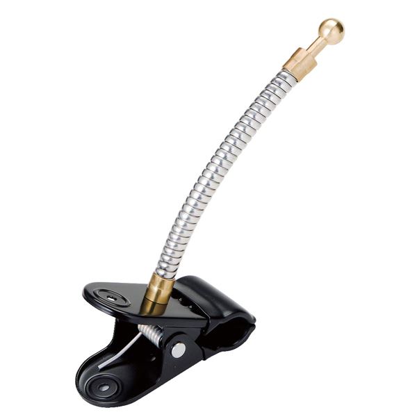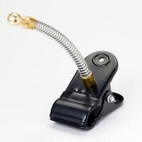はさみ込むだけのクリップで簡単ワンタッチ取り付け。フレキシブルアームで位置決め・角度調整も自在に行えます。