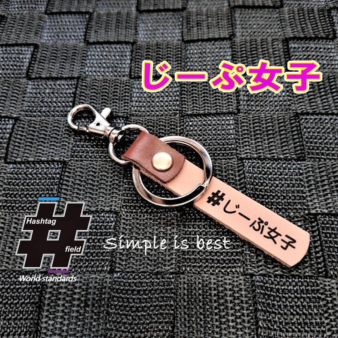 #じーぷ女子 本革ハンドメイド ハッシュタグチャームキーホルダー jeep ジープ クライスラー チェロキー ラングラー / Hashtag field製