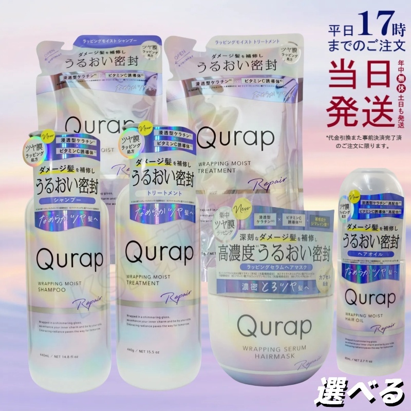 Qurap 選べる キュラップ ラッピングモイスト シャンプー / トリートメント 本体 440mL 詰め替え 370mL ヘアマスク 180g ヘアオイル 80ml 保湿 ヘアケア
