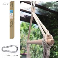 吊り下げるためのスナップ金具付です。雨ざらしでお使いいただくと生地や木製バーが傷みますので雨天等は片づけるか軒のある場所に設置してください。定期的に布やロープの摩擦・金具の劣化がないかを確認してください。ブランコのように揺らす、故意に回転させることは大変危険ですのでおやめください。