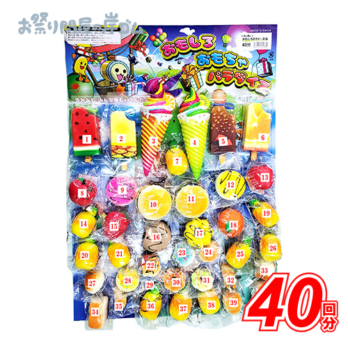 はずれなしの40付スクイーズ当て。かわいいスクイーズが40個ついているので、飾っているだけで目を引きます♪