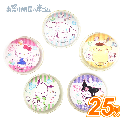 5種類(ハローキティ、ポムポムプリン、クロミ、ポチャッコ、シナモロール)のキャラクターがデザインされたスーパーボールでたくさん遊んでね!