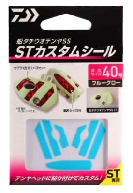 ■「船タチウオテンヤSS ST」には事前にカスタムシールが貼り付けられるように溝を入れている。この溝を利用し、釣行時の状況に応じてヘッドカラーをアレンジできるカスタムパーツ。■仕様内容は、ゼブラ部分(ヘッド左右分)+腹部分をセットで3枚。■カラーは、全5色のグローシール3色(グリーン、ブルー、ピンク)とホログラムシール2色(ゴールド、レッド)。■環境対応紙パッケージ採用。