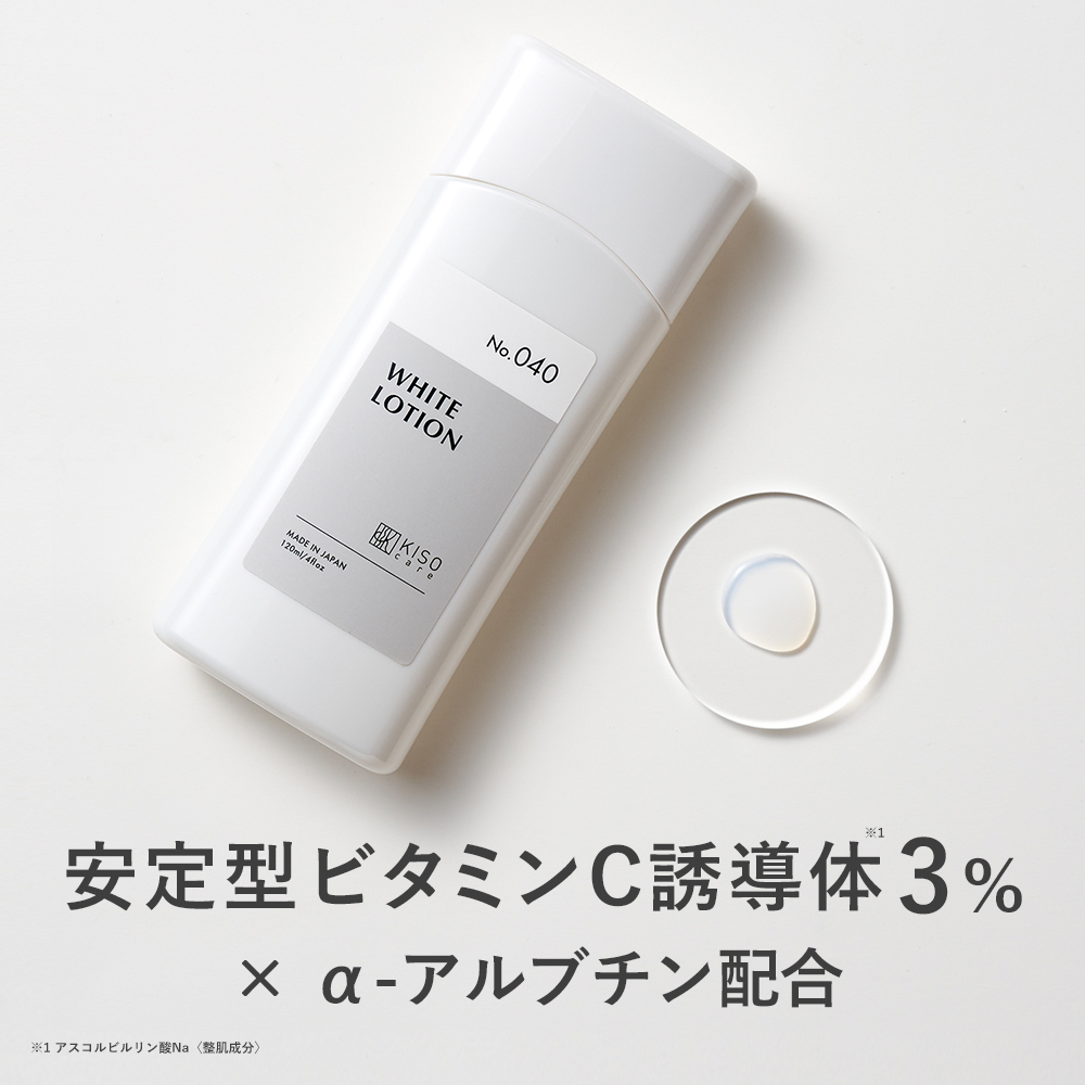 水、エトキシジグリコール、アスコルビルリン酸Na、グリセリン、ペンチレングリコール、α-アルブチン、グリチルリチン酸2K、アセチルヒアルロン酸Na、ヒアルロン酸クロスポリマー-2-Na、加水分解ヒアルロン酸、ヒアルロン酸Na、ハトムギ種子エキス、ツボクサエキス、オウゴン根エキス、イタドリ根エキス、カンゾウ根エキス、チャ葉エキス、ローズマリー葉エキス、カミツレ花エキス、(スチレン/アクリレーツコポリマー、BG、クエン酸、クエン酸Na、エチルヘキシルグリセリン、 ピロ亜硫酸Na、デヒドロ酢酸Na、フェノキシエタノール |