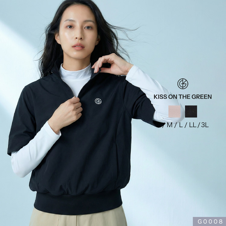 ゴルフウェア レディース ウィンドブレーカー 5分袖 ハーフジップ ハイネック S〜3L アウター プルオーバー 防風 大きいサイズ 小さいサイズ