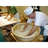 ご家庭にある道具で簡単に蕎麦が打てますよ! ☆延すには☆ 蕎麦を打つには専用、専門の道具が必要?あればベストと思いますが・・初めは家庭にある道具でも十分に蕎麦を打つ事が出来ます。先に練りまとめた生地を延すのに、直径3-5cm、長さ60cm以上の棒が必要となります。(麺棒と言われているもの)表面が滑らかで反りのないものなら長めの”スリコギ”で代用出来ます。この延す時に広くて平らな場所が必要になりますが大きめの食卓テーブルにても十分です。(反りの無いものがベスト)この延す時に打ち粉が必要となります。 ☆切る、茹でるには☆ ご家庭にある包丁(刃が平らな菜切り包丁がベスト)、まな板(よくあります白いプラスチック製でもOK!平らなものがベスト)にて十分!延し終えた生地を包丁の長さよりも短めにたたみ、切りやすいように、まな板と生地にタップリ打ち粉をふりかけます。茹でる前にはこの打ち粉を十分に落とす事を忘れずに!さて!レッツゴー^^