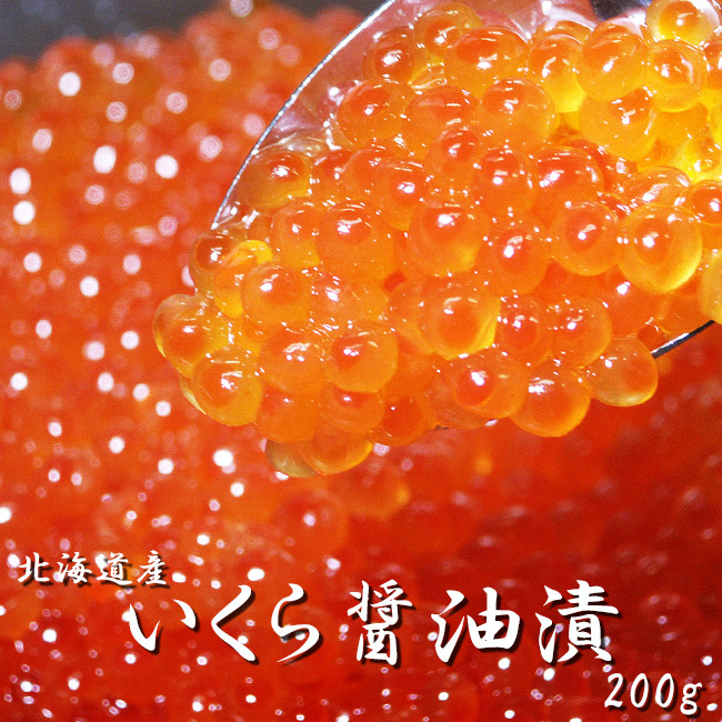 原材料名:鮭卵(北海道産)、醤油、かつお節エキス、食塩、砂糖、発酵調味料、調味料(アミノ酸等)、ソルビット、甘味料(ステビア、甘草)、(原材料の一部に小麦粉、大豆を含む)