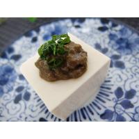 お豆腐にカニミソを乗せて、大葉をトッピング!