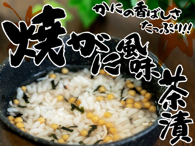 ![]() お手軽なのに蟹の香ばしさたっぷりな、焼きがに風味茶漬けをぜひ一度ご賞味下さい!