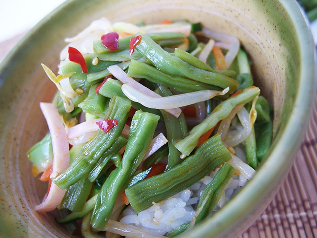 ![]() ![]() ![]() 中華ナムル丼にしてみました。 野菜と山くらげを和えて、ご飯に載せるだけで出来上がり。