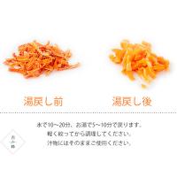 ![]() 国内産原料の人参の美味しさをそのまま閉じ込め、熱風乾燥させています。 お味噌汁やお鍋には、そのままいれるだけ!すでに刻まれているので包丁いらずの簡単調理が可能です! 【栄養豊富な国産のにんじん使用】 人参は野菜の中では炭水化物が多く、蔗糖を多く含んでいるために、特有の甘味があります。 栄養も豊富で、ビタミンB1・B2・C、カリウム、食物繊維も多く含まれています。 カロテン類が豊富で、根菜類では唯一の緑黄色野菜に分類されています。 ニンジン特有の色は含まれている栄養素の一つのβ-カロテンによるもので、その含有量が少ないと赤みが少なくなってしまいます。 ![]() 安全で美味しく、常備しておくだけで便利な逸品です!いろいろとアレンジするだけで、多彩な料理をお楽しみ頂けます。ぜひ、ご賞味ください! ![]() ![]() スプーン一杯で1人前分くらいですが、お好みで調整してお召し上がりください。 90度?100度くらいのお湯で5分?10分程で戻ります。軽く水気を切ってから調理してください。 汁物にはそのままご使用ください。 ![]() 保存性も良く、一人暮らしの方にもおすすめです! 一人暮らしだと野菜を買っても使い切れない事がありますよね。乾燥野菜は必要な分だけ使えて、何か月も保存ができます。野菜不足の解消に役立ちます。 ■いろいろな方法でお召し上がりください。 ![]() 旬の山菜と合わせて栄養豊富で旨味たっぷりの炊き込みご飯で召し上がってみて下さい。 他の具材と一緒に入れて炊飯器のスイッチを入れるだけです! キンピラはあらかじめ熱湯で戻し、他の具材と合わせてフライパンにごま油をひき、しんなりするまで炒めます。 あとは、調味料で味を整えて完成です!お好みで最後にゴマなどをかけても風味がよくなりますよ。 サラダと一緒に合わせてもオススメです。 食べやすい形にカッティングされているので、あとはお好みの具材とドレッシングをかければサラダの完成です! そのまま味噌汁やスープに入れたりもどして煮物や和え物の彩にお使い下さい。 調理の仕方で幅広くお使い頂けますので、ご家族と一緒にお楽しみください。 ![]() カット済みなので、インスタントみそ汁・カップラーメン・カップ焼きそば等へのちょい足しにもおススメです。他の料理のトッピングにも合わせやすいと思います。 ![]() 洗ったり、切ったりの手間が必要ないのが特徴です。 忙しくて買物にいけなかったり、ひどい天候が続いた日や体調が優れない時などに役立つと思います。 欲しい時に欲しい分だけ調理してお楽しみ頂けます。 ![]() 常備しておくと乾燥野菜の便利さをわかっていただけると思います! 簡単に調理ができて、密封しておけば長期保存もできる優れものです!幅広い料理にご使用ください!