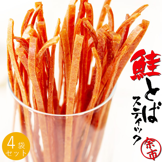 余市鮭とばスティック 65g×4袋【北海道産サケ使用】絶品サーモンの珍味 柔らかい鮭を食べやすくスティックタイプ【メール便対応】