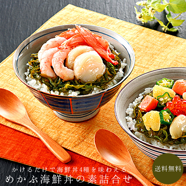 めかぶ海鮮丼の素詰合せ 【えび かに ほたて サーモン いくら ほっき】海鮮丼 手巻き寿司 【甘えび鮭醤油 メカブ】【送料無料】