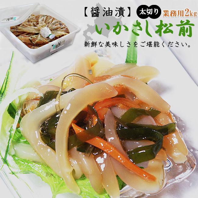 松前漬けをアレンジし、 お刺身風のいかに醤油やみりん、細切り昆布を混ぜ合わせ、 素材の旨味をじっくり引き出すよう熟成させた「烏賊刺し松前」です。お酒好きにはたまらない一品なのではないでしょうか! 業務用サイズは、当店が販売している通常サイズと比べると13倍以上もの量になります。通常は画像右側の容器に入れて皆様にお届けされますが、業務用になると画像左側の大きな容器に、【いかさし松前】が袋に詰まったままの状態でお届けとなります。 見た目はイマイチかもしれませんが、味は同じですし、コスト軽減しているからこそお安くご提供できるのが業務用の良い所です! 【いかさし松前】が大好きな人にとっては嬉しいサイズですね! ![]()