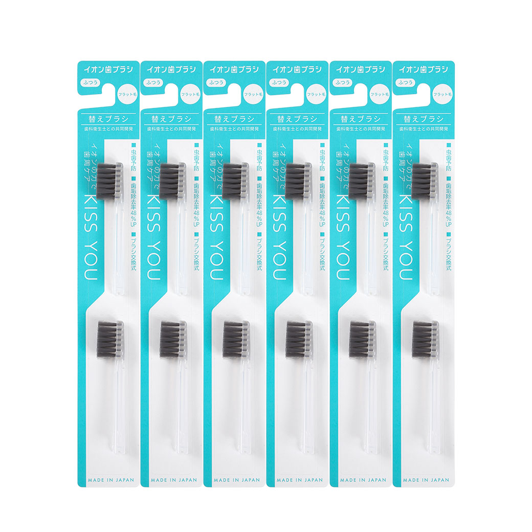 【新商品】キスユー フラットミディアム ふつう 替えブラシ12本(2P×6)セット イオン歯ブラシ 歯科衛生士共同開発 虫歯予防 爆買