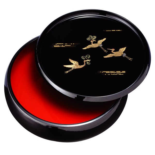 色とりどりの装飾が美しい紀州漆器の菓子器。