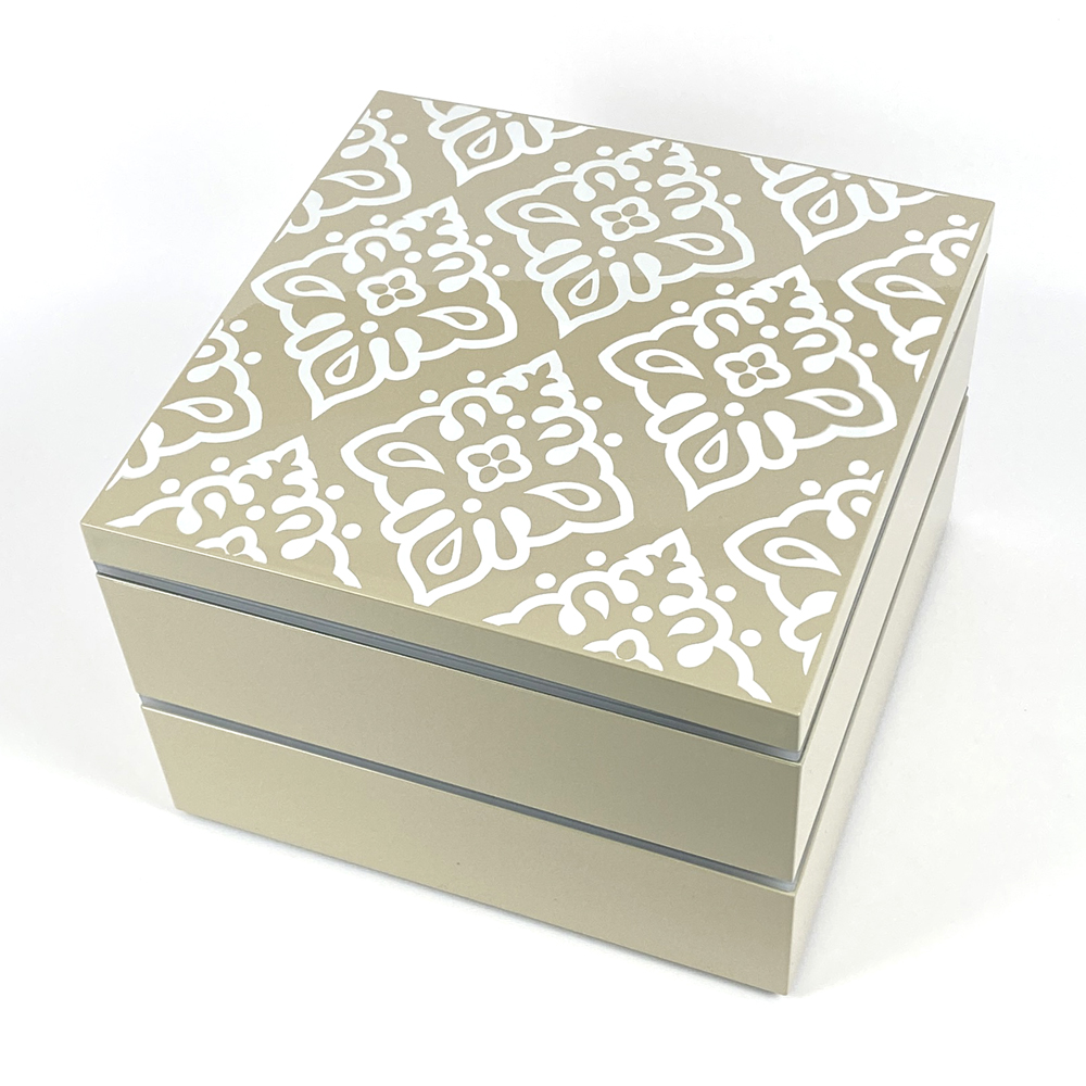 重箱 2段 仕切り4個・シール蓋付 北欧 ノルディック ベージュ かわいい おしゃれ 2段重箱 6寸 18cm シンプル 食器 おせち 和食器 お重箱